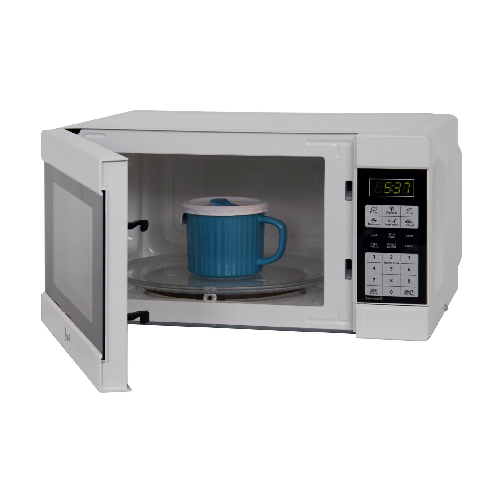 - Seis modos de cocción preestablecidos de un solo toque (papas al horno, palomitas de maíz, pizza, bebidas, cena congelada, recalentar)